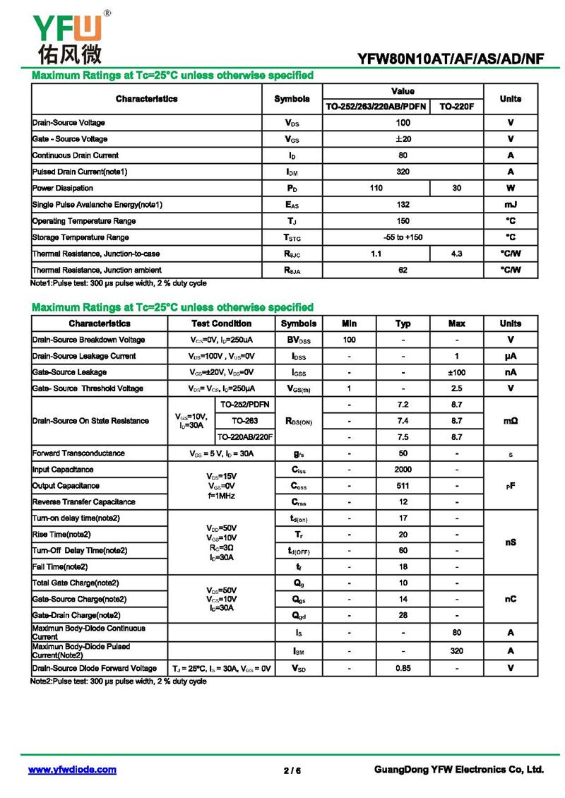 場(chǎng)效應(yīng)管YFW80N10AS-R 規(guī)格書_價(jià)格_PDF手冊(cè)-廣東佑風(fēng)微原廠YFW80N10AS-R TO-263_(YFW佑風(fēng)微)品牌