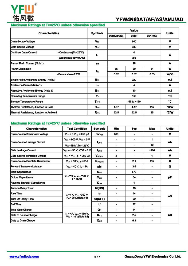 場效應(yīng)管YFW4N60AS-R 規(guī)格書_價格_PDF手冊-廣東佑風(fēng)微原廠YFW4N60AS-R TO-263_(YFW佑風(fēng)微)品牌