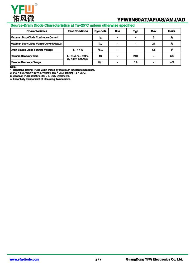 場效應(yīng)管YFW6N60AS-R 規(guī)格書_價格_PDF手冊-廣東佑風(fēng)微原廠YFW6N60AS-R TO-263_(YFW佑風(fēng)微)品牌