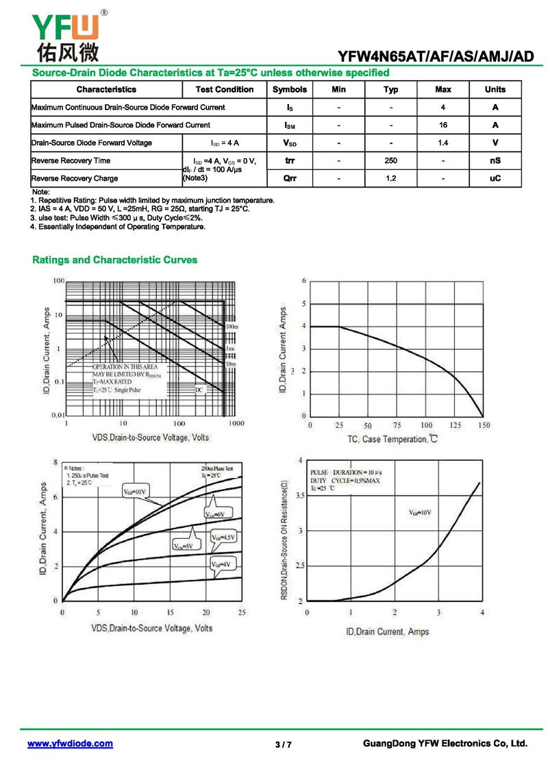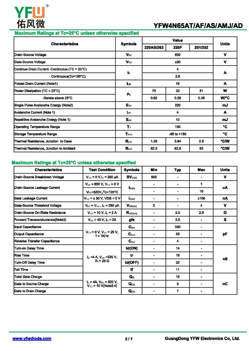 場效應管YFW4N65AS-R 規格書_價格_PDF手冊-廣東佑風微原廠YFW4N65AS-R TO-263_(YFW佑風微)品牌