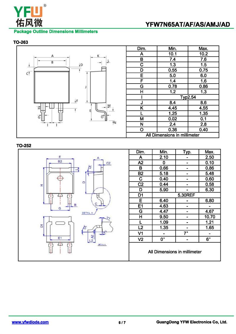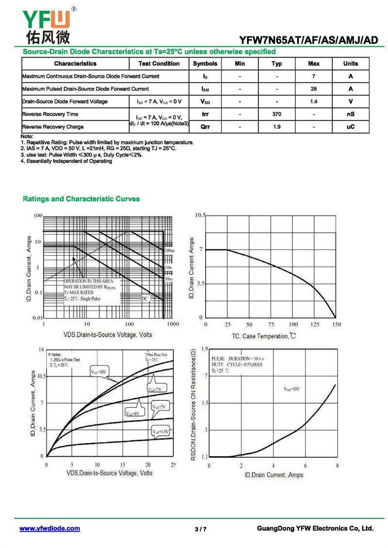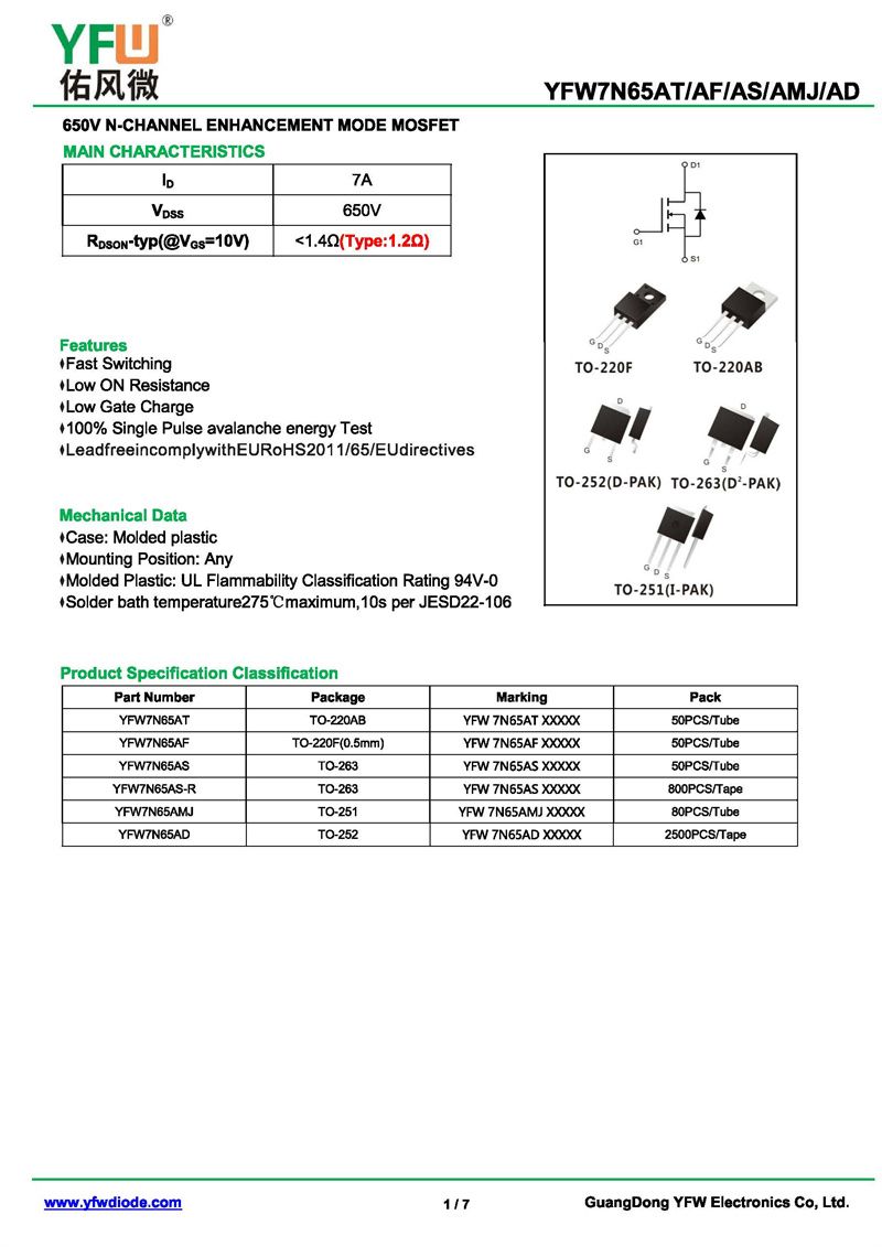 場效應管YFW7N65AS-R 規格書_價格_PDF手冊-廣東佑風微原廠YFW7N65AS-R TO-263_(YFW佑風微)品牌