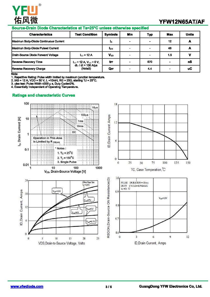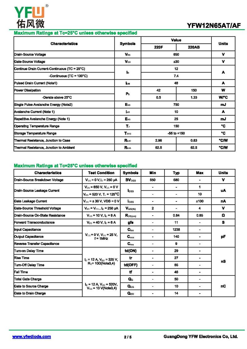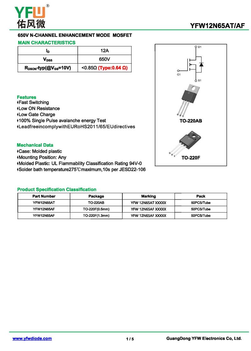 場效應管YFW12N65AS-R 規格書_價格_PDF手冊-廣東佑風微原廠YFW12N65AS-R TO-263_(YFW佑風微)品牌