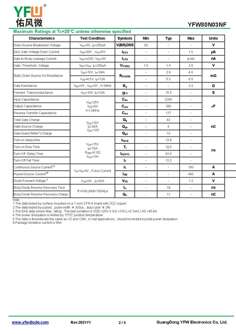 場效應(yīng)管YFW80N03NF 規(guī)格書_價(jià)格_PDF手冊-廣東佑風(fēng)微原廠YFW80N03NF PDFN5*6-8L_(YFW佑風(fēng)微)品牌