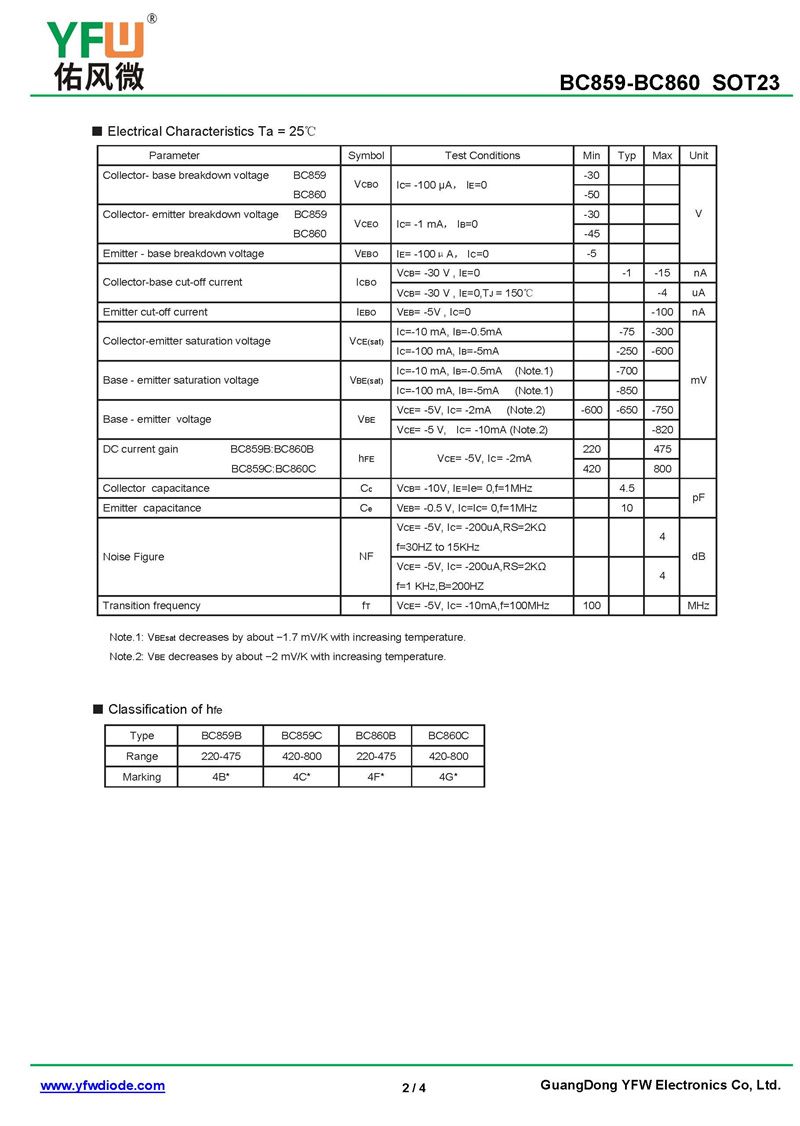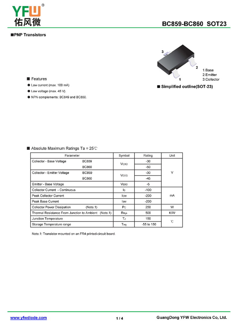 晶體管BC859 規格書_價格_PDF手冊-廣東佑風微原廠BC859 SOT-23_(YFW佑風微)品牌