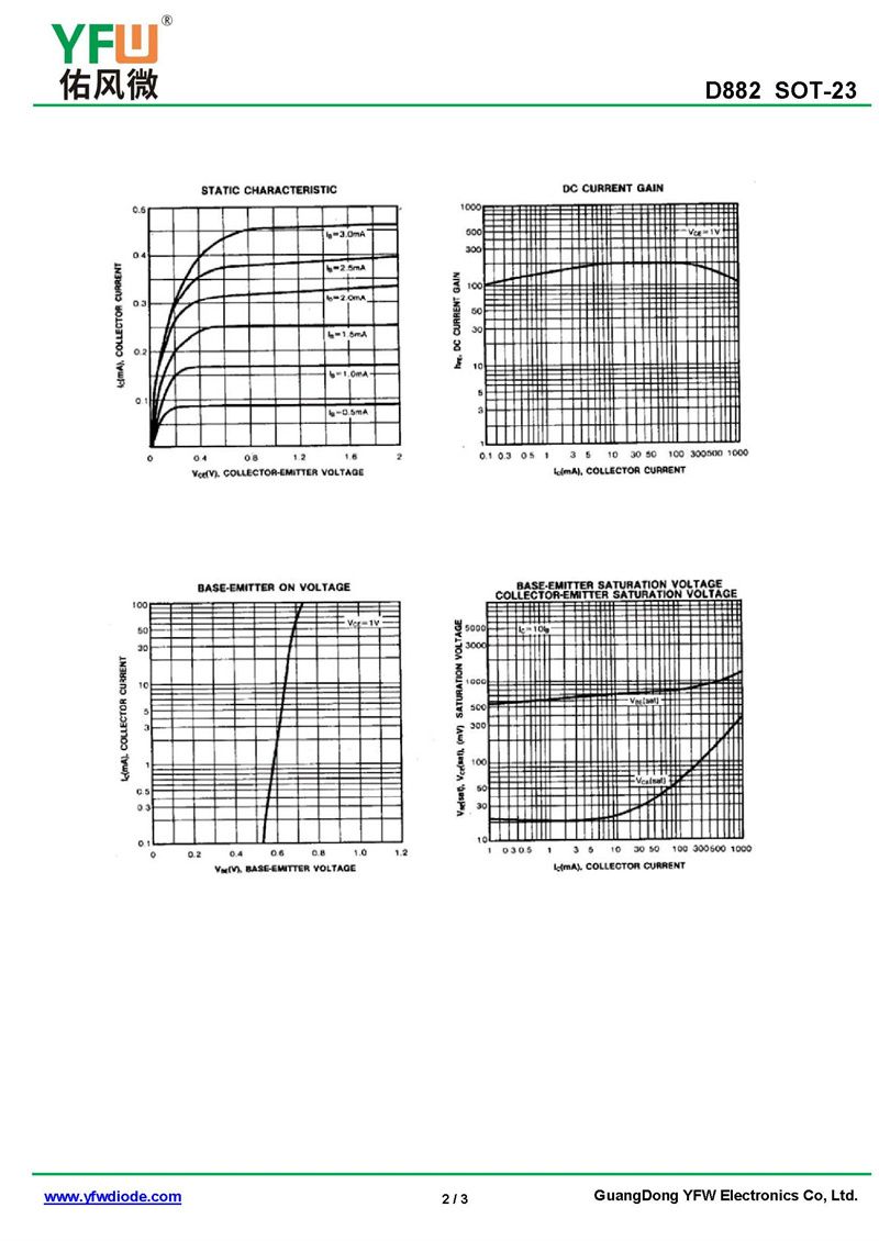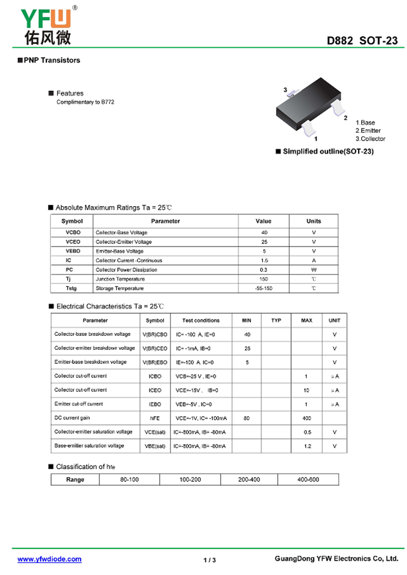 晶體管D882 規格書_價格_PDF手冊-廣東佑風微原廠D882 SOT-23_(YFW佑風微)品牌