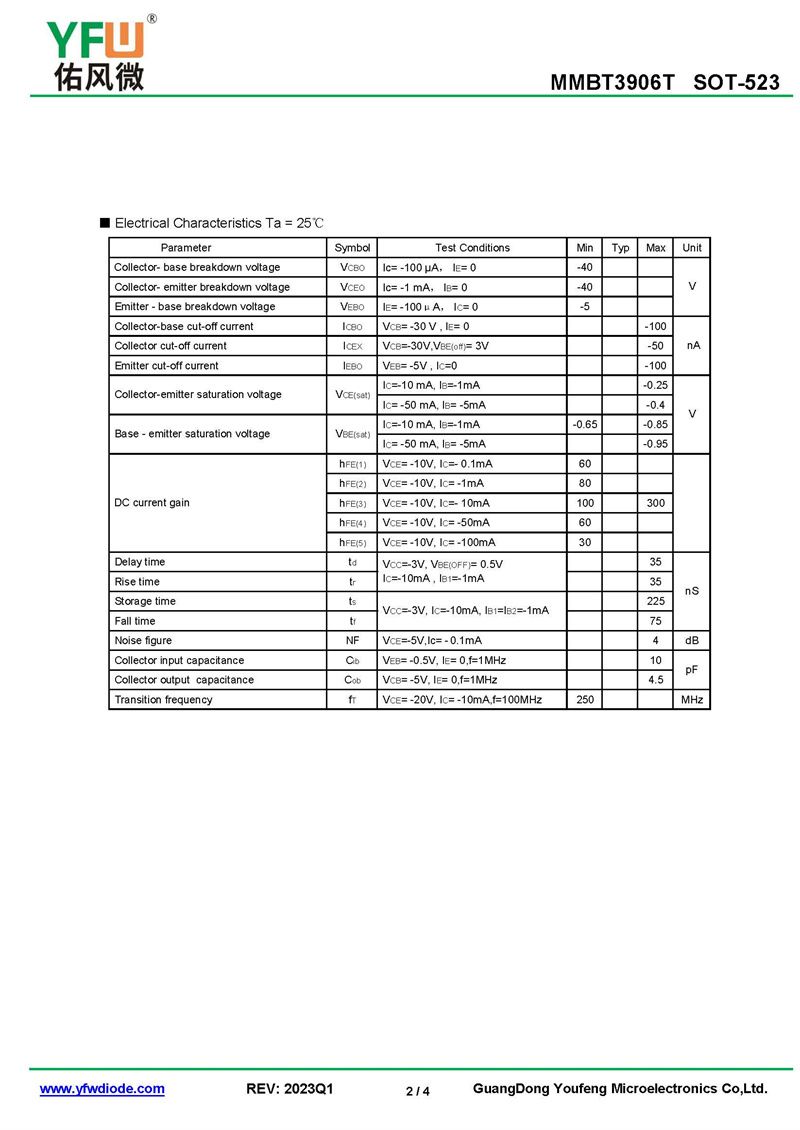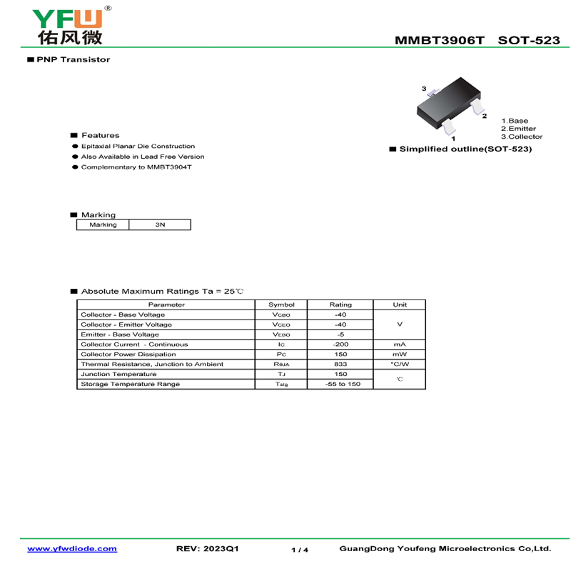 晶體管MMBT3906T 規格書_價格_PDF手冊-廣東佑風微原廠MMBT3906T SOT-523_(YFW佑風微)品牌