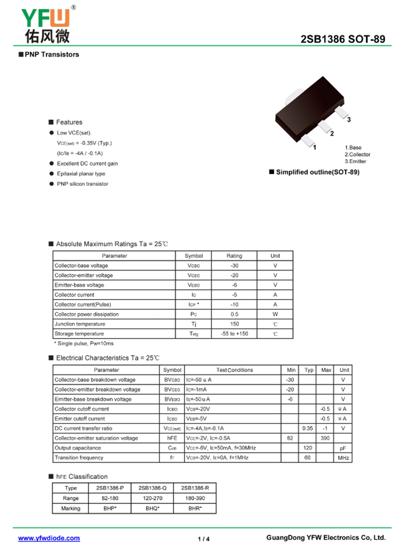 晶體管2SB1386 規格書_價格_PDF手冊-廣東佑風微原廠2SB1386 SOT-89_(YFW佑風微)品牌