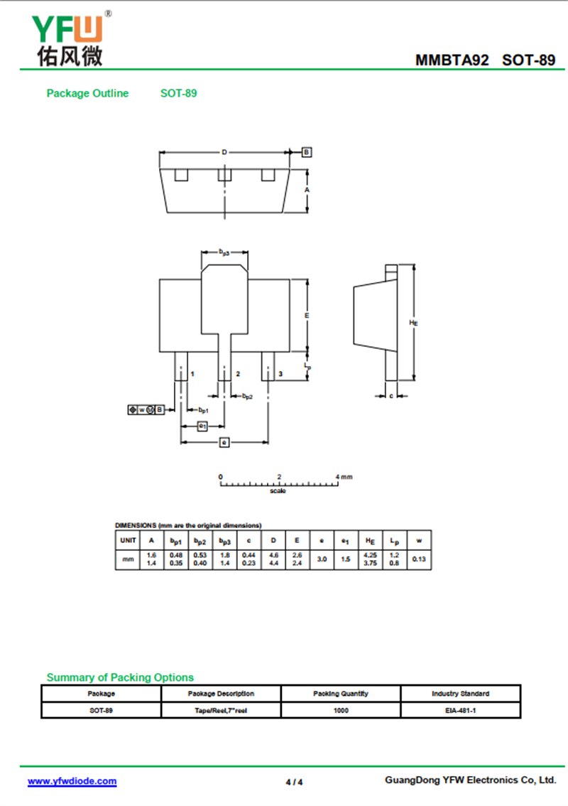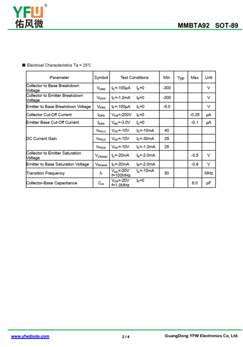 晶體管MMBTA92 規格書_價格_PDF手冊-廣東佑風微原廠MMBTA92 SOT-89_(YFW佑風微)品牌