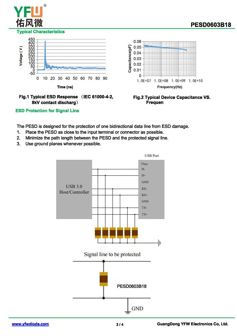 靜電保護二極管PESD0603B18 規格書_價格_PDF手冊-廣東佑風微原廠PESD0603B18 0603_(YFW佑風微)品牌