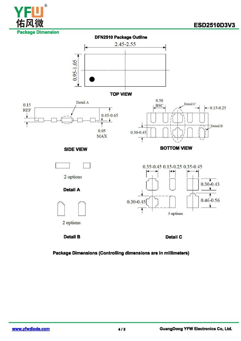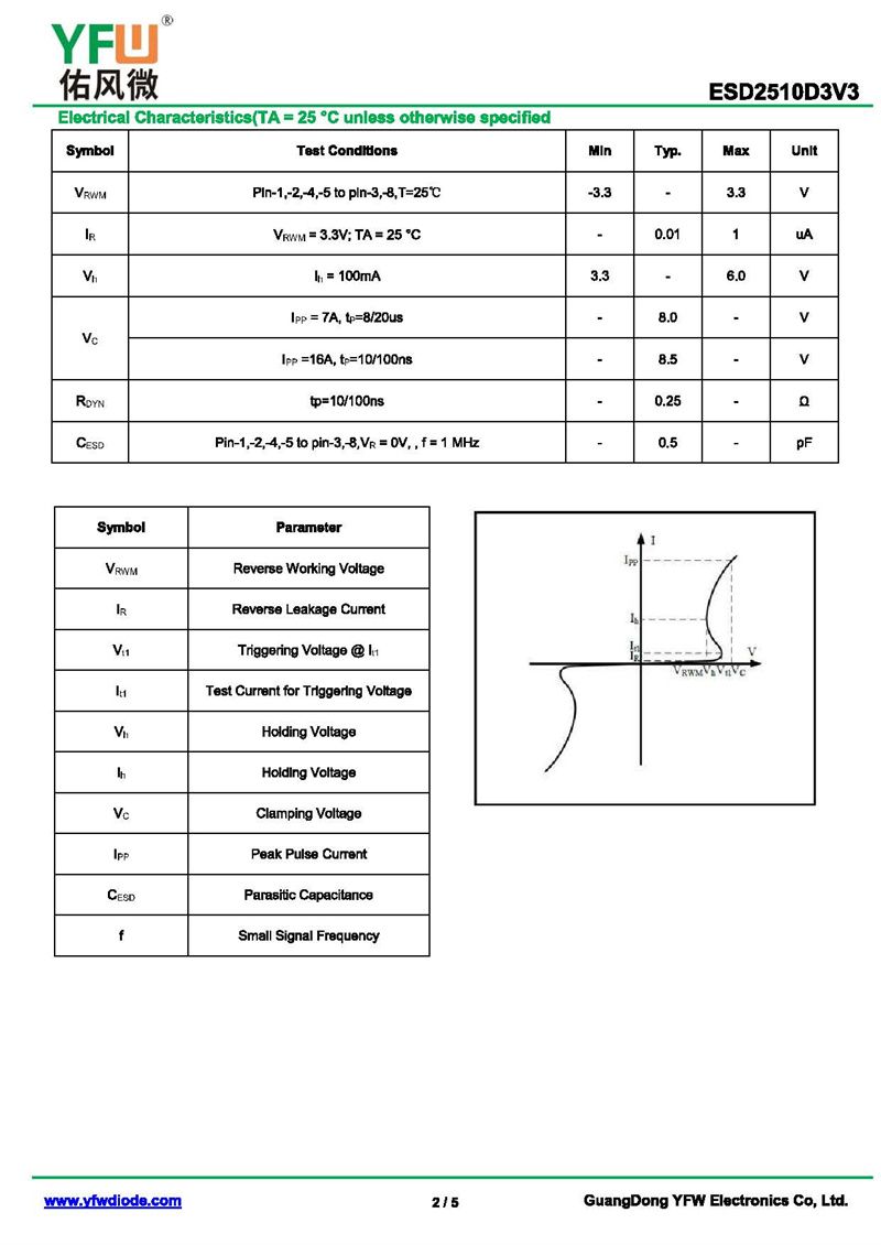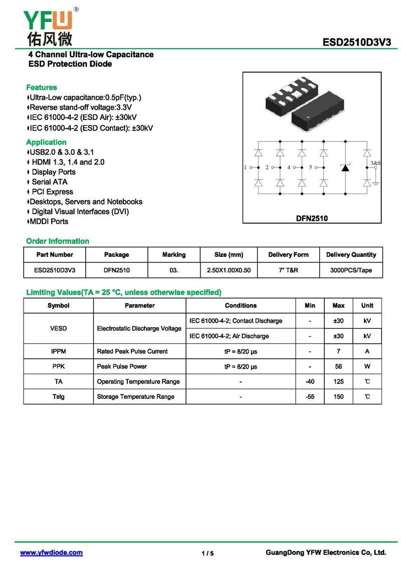 靜電保護二極管ESD2510D3V3 規格書_價格_PDF手冊-廣東佑風微原廠ESD2510D3V3 DFN2510_(YFW佑風微)品牌