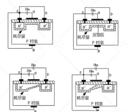 在 N 溝道 MOS 管中,當柵極施加正電壓時,柵極附近的電子被排斥,形成一個電子空缺區域,這就是耗盡層。相反,在 P 溝道 MOS 管中,當柵極施加負電壓時,柵極附近的空穴被排斥,形成一個空穴空缺區域,這也是耗盡層。